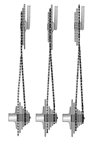 登ったり下ったり、向かい風だったり、疲れていたりしたときにはギア比を変えることが必要になります。でも本当はチェーンが真っ直ぐなときがペダルを踏む力が一番効率が良く伝わるんです。できるだけチェーンを真っ直ぐに使って、伝導効率を良くして使うのがコツです。ケイリンのようなトラック競技でシングルギアなのは理由があるんです。チェーンやギアに横からのストレスを与えないのでチェーンやギアの摩耗を少なくする利点もあります。 実際に変速機を使うときは左の図のように使うと良いでしょう。